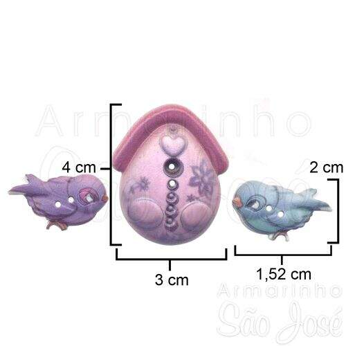 Descrição Botão Patchwork We Care About Passarinho/Ninho