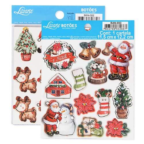 Botões Aplique Natal em Papel e MDF BAN Litoarte