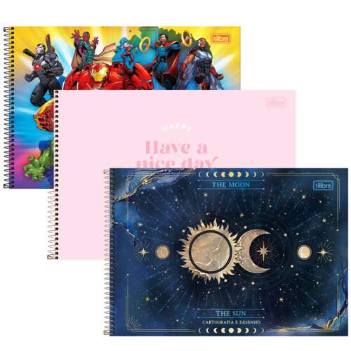 O Caderno de Cartografia e Desenho Espiral Capa Dura com 80 Folhas possui capa dura com a parte interna decorada, folha de adesivos e folhas sem pautas. Ideal para o dia a dia na escola, auxiliando o aluno nas atividades de desenho e colorir.