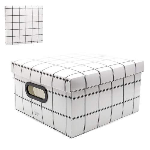 Caixa Organizadora Média Minimal é produzida em polipropileno laminado, que permite fácil limpeza, e estampada em xadrez no estilo Japandi, que une o minimalismo japonês com o conforto dinamarquês. Acompanha 02 pegadores e 02 canaletas. Possui encaixe para apoio das mãos na hora do transporte e capacidade de 12,61 litros.