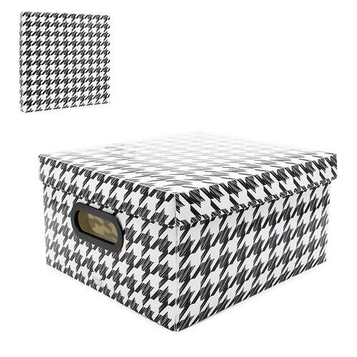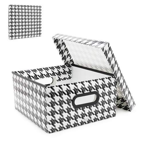 Caixa Organizadora Média Pied de Poule é produzida em polipropileno laminado, que permite fácil limpeza, e estampada no clássico xadrez Pied de Poule. É elegante. É moderno. É estiloso. A sofisticação se faz presente aqui. Acompanha 02 pegadores e 02 canaletas. Possui encaixe para apoio das mãos na hora do transporte e capacidade de 12,61 litros.