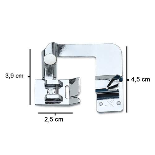 O Calcador Barra e Bainha 10mm, É Ideal Para Fazer Barras De 4/8 (10mm) Em Suas Peças De Vestuário Ou Decorativas, Deixando Todo O Processo De Costura Mais Fácil E Prático!