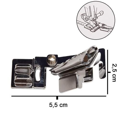 Este calcador auxilia na aplicação do viés pré-pronto (dobrado) ele é equipado com um pequeno funil para dobrar e manter a costura sempre reta, utilize com pontos decorativos, zig zag, ou como mais comum, o ponto reto. Deixe seus trabalhos com um acabamento especial.