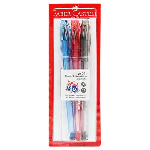 Caneta Esferográfica Ice 061 Faber-Castell 0.8mm 03 Cores