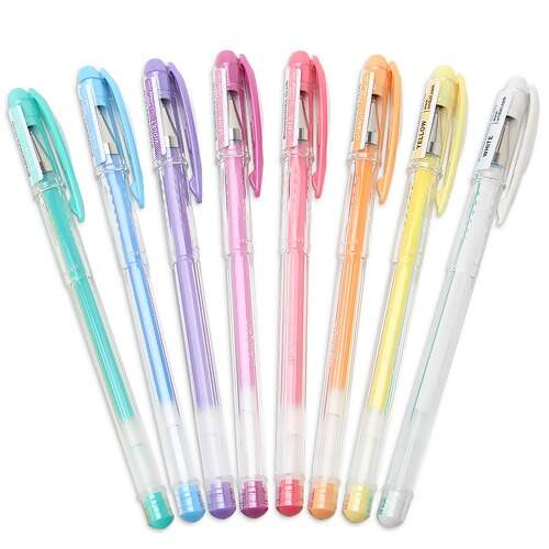 Essas são as mais fofas de todas! São 8 cores em gel que dão uma cobertura especial que se destacam até em papéis escuros e coloridos. Resistente a água. Secagem rápida.