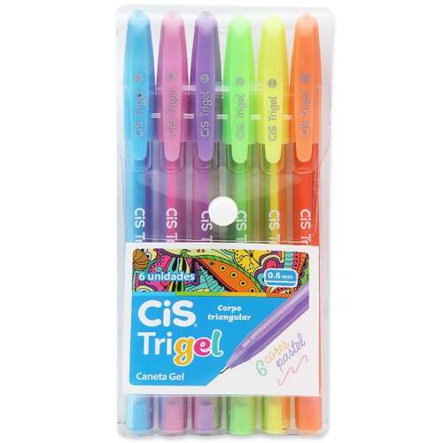Descrição Caneta Gel Triangular Trigel Pastel Cis 0.8mm Estojo com 6 Und
