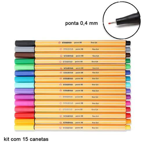 Descrição Caneta Stabilo Point 88 0,4mm 8815 Estojo com 15 cores