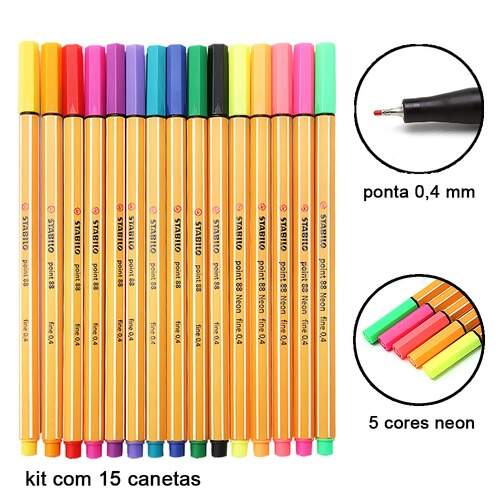 Descrição Caneta Stabilo Point 88 0,4mm 8815-1 Estojo com 15 cores