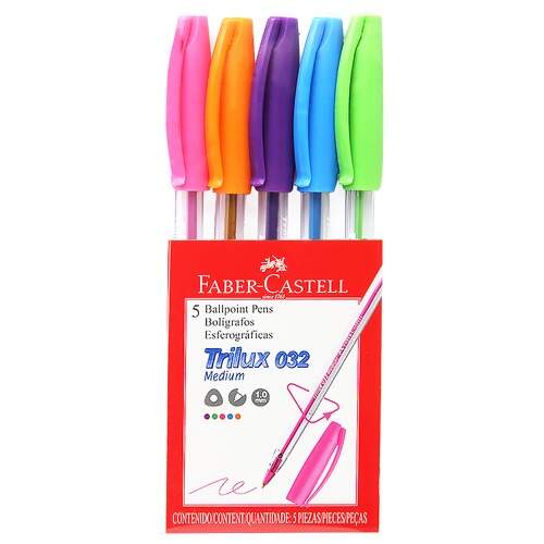 Descrição Caneta Trilux Colors Faber-Castell 032-ESC com 5 Cores
