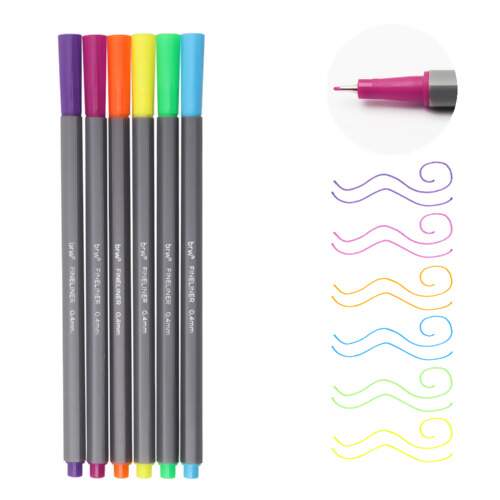 Para os que buscam cores lindas e uma ponta fininha de 0,4mm para fazer traços perfeitos, a Caneta Fineliner - 06 Unidades BRW é a melhor pedida!