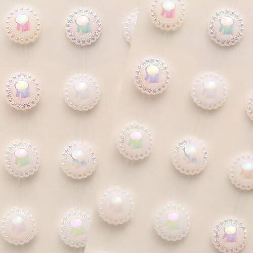 Detalhe Cartela Adesiva Wei Flor Pérola AB-BR-10 Cor Branca 10mm FL