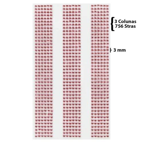 Cartela Adesiva Wei Strass com Faixa 3mm DIA-RO-3F- Rosa
