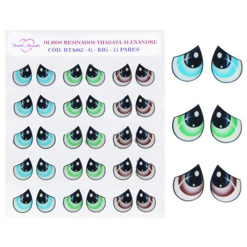 Descrição Cartela de Olhos Resinados Big G RTA-062 15 Pares Sortidos