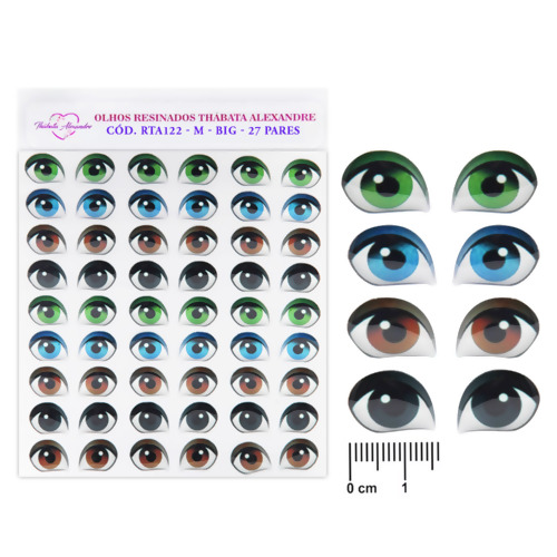 Cartela de Olhos Resinados RTA-122 Pares Sortidos Big- 27 Pares Tamanho 16mm