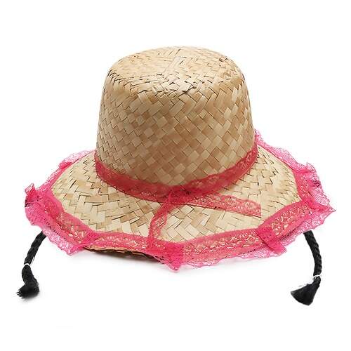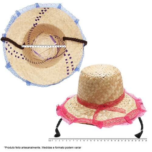 Descrição Chapéu Juvenil de Palha com Renda e Trança Curta