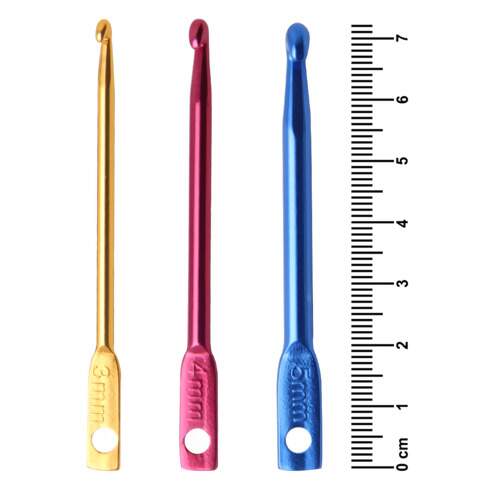 Mini agulhas para crochê, composto por 3 agulhas com numerações e cores diferentes. É super resistente, prática e leve, acessório mais que perfeito pra quem ama crochê. Ideal para levar na bolsa!