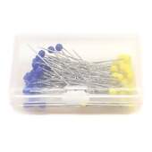 - Alfinetes com cabeça de vidro ou plástico: são ferramentas utilizadas para segurar e prender tecidos e outras peças durante a confecção da peça.