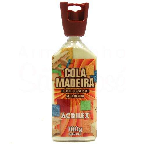 A cola para madeira Acrilex é utilizada para colagem de peças de madeira em geral como: portas, janelas, caixas, chapas, encaixes de peças de madeira, além de papel, papelão e cartões. Ideal para fabricação de móveis, possui pega rápida e firme. As superfícies que serão coladas, devem estar limpas, perfeitamente planas e secas. Aplique a Cola para madeira Acrilex diretamente com o bico (camada uniforme) em uma das superfícies e junte as partes imediatamente, antes da secagem. Mantenha as partes sob pressão até a secagem total. Não tóxica.