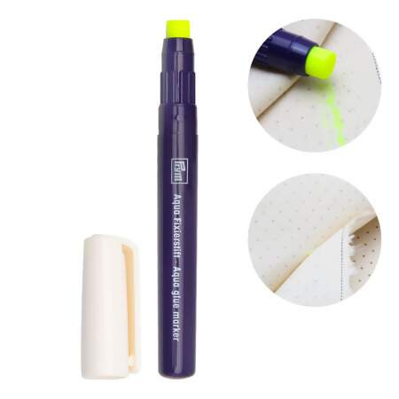 A cola fica visível na cor amarelo fluorescente, mas desaparece assim que a cola secar.