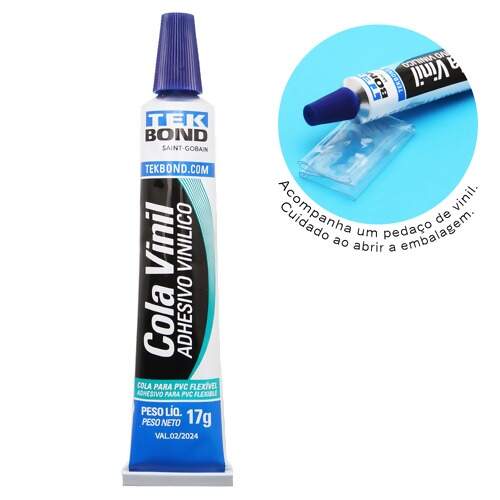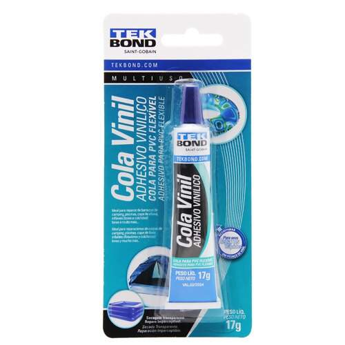 A Cola Vinil Tekbond é um produto especialmente desenvolvido e indicado para colagens de PVC flexível entre si. Ideal para reparos de barracas de camping, lonas de caminhão, boias infláveis, piscinas, malas, dentre outros. Possui rápida aderência, boa flexibilidade e excelente resistência água e intempéries.