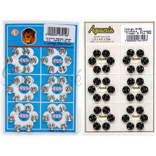 Colchete de pressão Para Costurar nº0 Trader Cartela c/ 3 dz