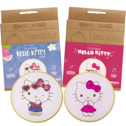 A Coleção Bordado Hello Kitty – Ponto Livre apresenta os modelos Fashion e Pop, com entretela solúvel estampada que facilita o bordado. O kit vem em embalagem moderna e delicada, oferecendo praticidade e estilo para quem ama bordar.