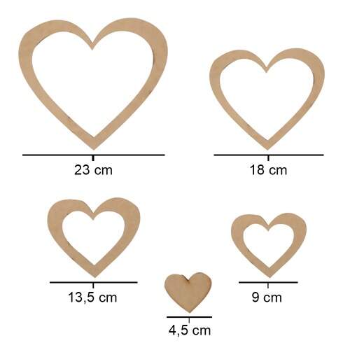 Descrição Conjunto de Régua em MDF Coração Ref.11401