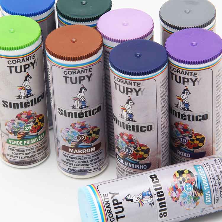 O Corante Tupy Sintético é indicado para tingir materiais como acrílico, acetato, botões, zíperes e aviamentos em geral. Proporciona cores vivas e uniformes, sendo ideal para artesanato e customização.