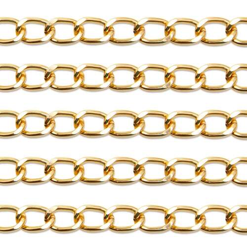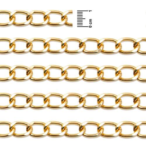 Descrição Corrente de Alumínio 2,2 Dourada 01 metro