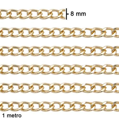 Corrente de Alumínio S.P N.12 8x12mm Cor Ouro com 01 metro