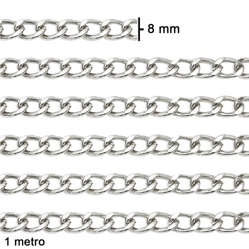 Descrição Corrente de Alumínio S.P N.12 8x12mm Cor Prata com 01 metro