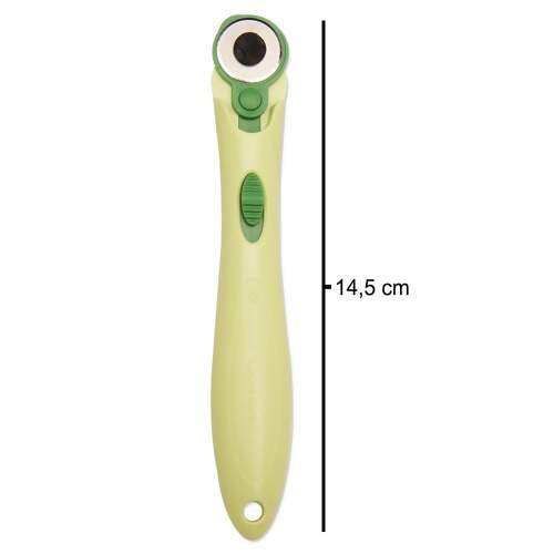 Macio para lidar com cortador rotativo, corta tecido com a quantidade certa de lâmina exposta, seja na vertical ou na diagonal. Para destros e canhotos.
