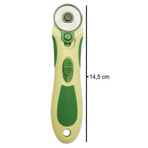 Macio para lidar com cortador rotativo, corta tecido com a quantidade certa de lâmina exposta, seja na vertical ou na diagonal. Para destros e canhotos.