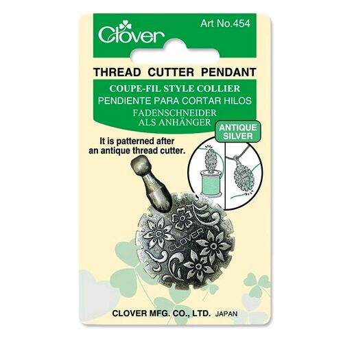 Um cortador de linha clássico projetado com uma lâmina afiada dentro . Pode ser colocado em cima de um carretel de linha ou usado como um pingente.