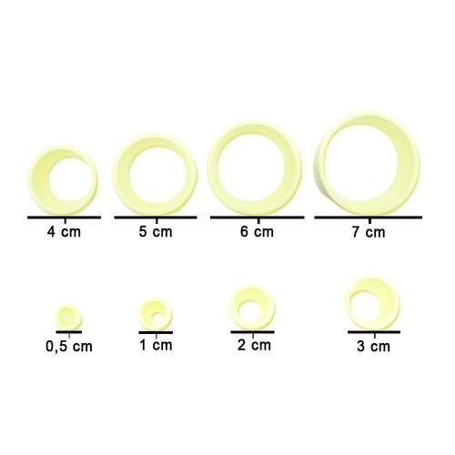 Tamanho: 7cm, 6cm, 5cm, 4cm, 3cm, 2cm, 1cm, 0,5cm