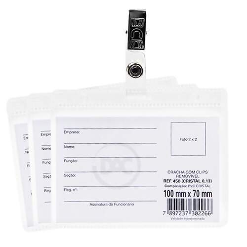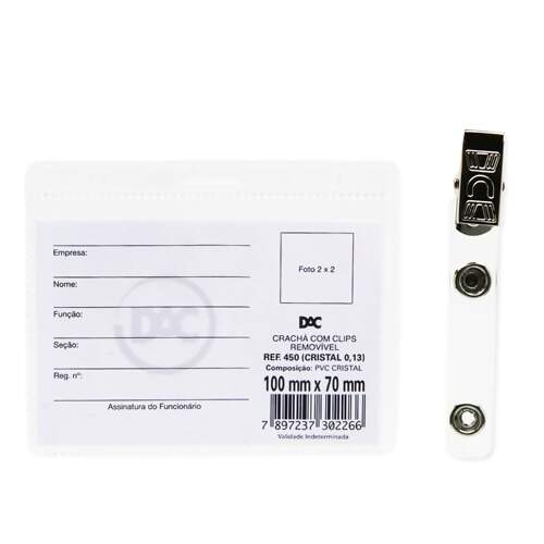 Descrição Crachá Horizontal com Presilha Removível Dac R.450 05 Und