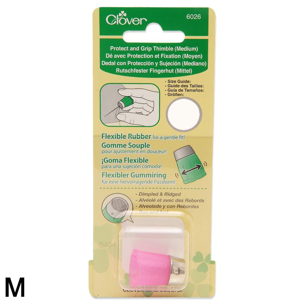 Seguro e inteligente, a tampa metálica sulcada e ondulada mantém a ponta da agulha no lugar e empurra as agulhas com segurança. Os dedais Protect e Grip oferecem a combinação perfeita de material macio e elástico com a segurança de uma tampa de metal no dedal. Este dedal proporciona conforto e leveza.