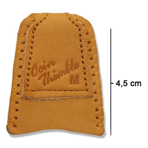 Dedal de couro macio com disco metálico na ponta do dedo. Permite empurrão mais forte através de tecidos duros.