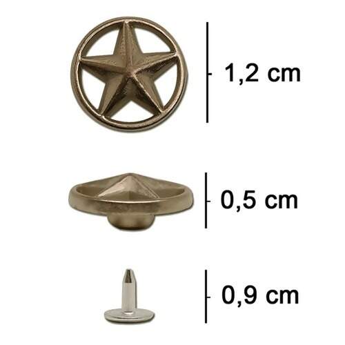 Rebite modelo Estrela auto perfurante, usado na industria de confecção de jeans.