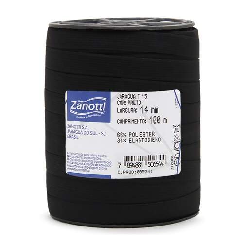 Descrição Elastico Jaraguá Preto Zanotti N.15 14mm com 100 mts