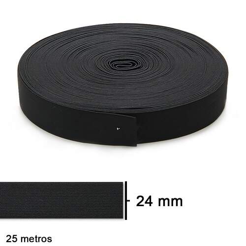 Descrição Elastico Jaraguá Zanotti n.25 preto 24mm rolo com 25 metros