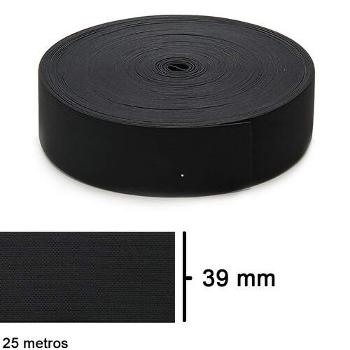 Detalhe Elastico Jaraguá Zanotti n.40 preto 39mm rolo com 25 metros