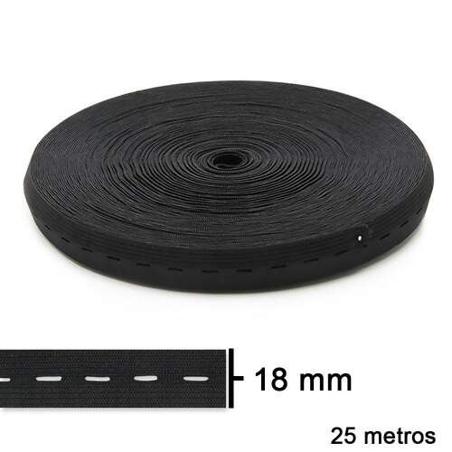 Elastico São José Para Casear 18mm Com Furos Preto Ref 4018 Rolo c/25mts