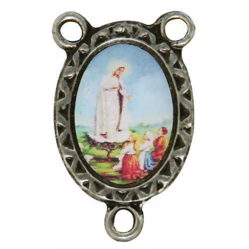 Entremeio para Terço Dupla Face Nossa S.de Fátima/Pastorinhos-2 Prata Fosco
