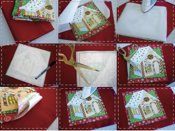 PASSO 03: Posicionar o aplique no tecido principal; colocar e pressionar o ferro por aproximadamente 12 segundos ou até que as superfícies fiquem bem unidas. Mesmo não sendo necessário, se preferir, costurar o aplique para acabamento final.