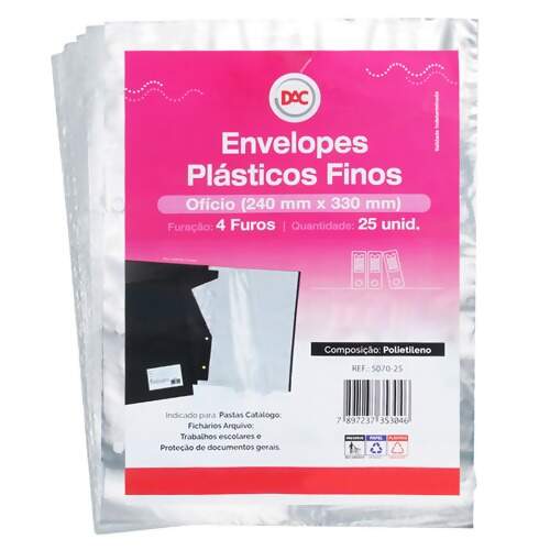 Envelope Plástico Fino Ofício Dac 4 Furos 5070-25 25 Und