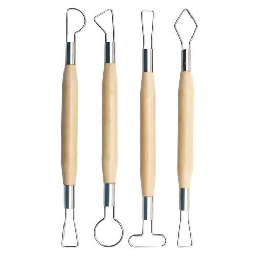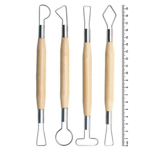 Kit composto por 4 estecas de ponta dupla: totalizando 8 pontas de arames, todas com formatos diferentes para raspar, cavar ou modelar.