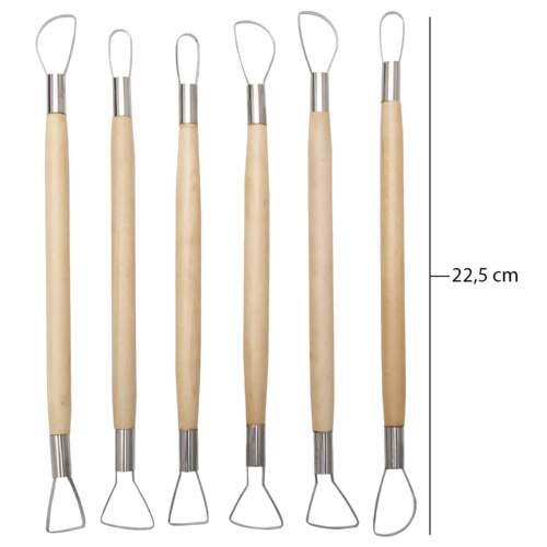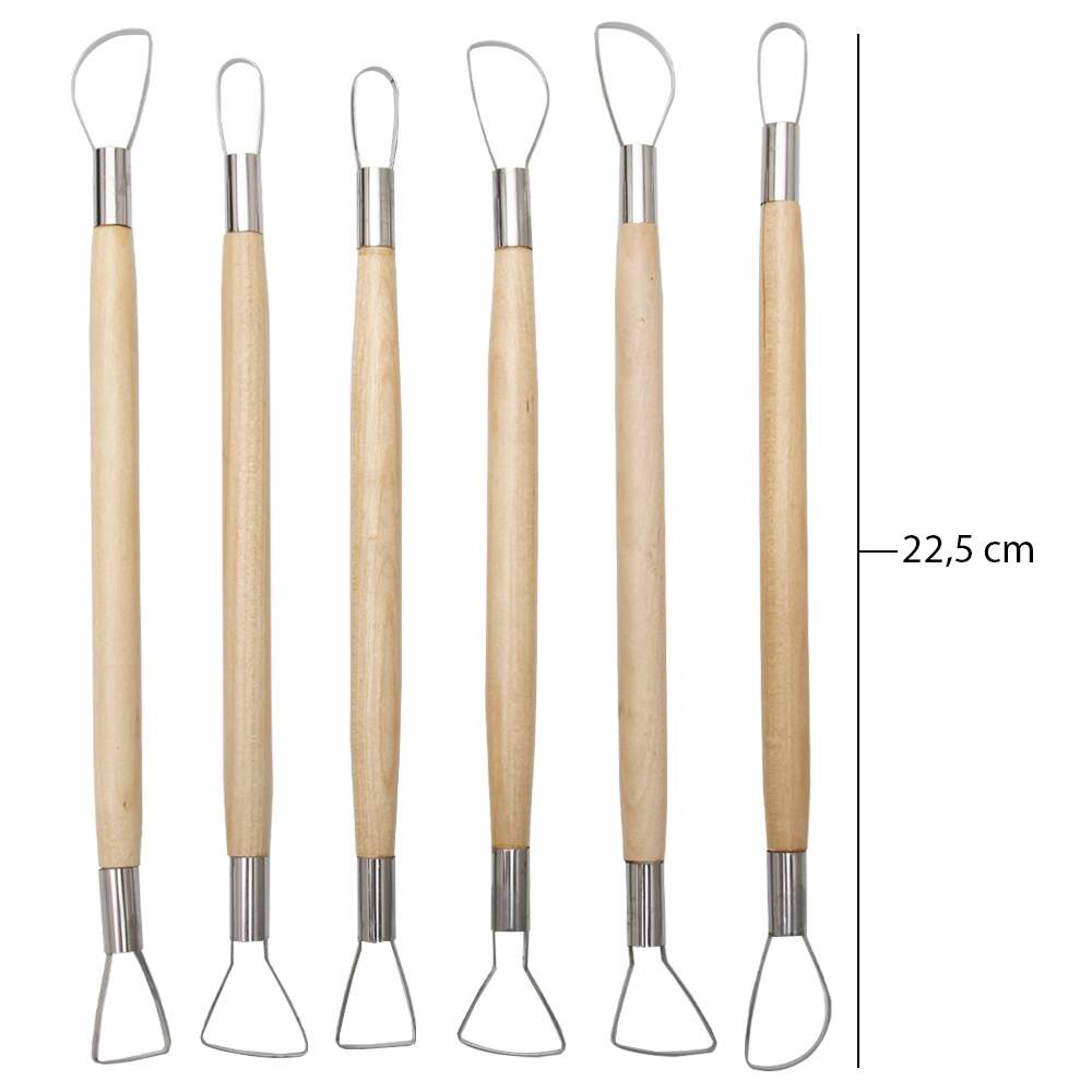Kit composto por 6 estecas de ponta dupla: totalizando 12 pontas de arames, todas com formatos diferentes para escultura em argila e massas em geral.