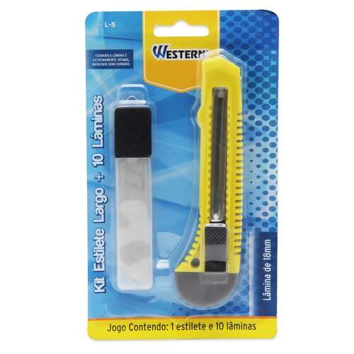 Estilete Largo Western Ref.L-5 18mm com 10 Lâminas