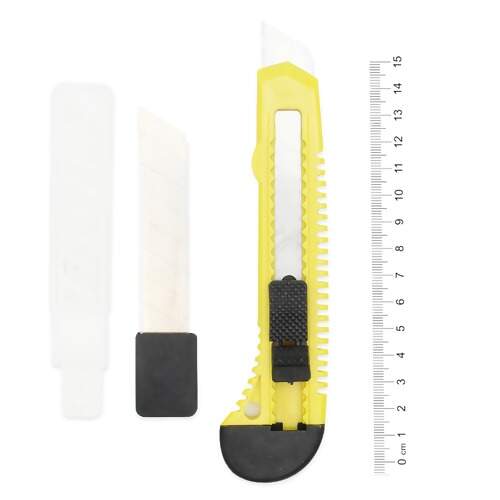 Estilete com lâmina 18mm. Ideal para cortes em papel, tecido, vinil, couro e uso doméstico.